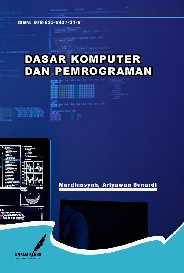 ![]() | Judul Buku: Dasar Komputer dan Pemrograman; Penulis: Mardiansyah, Ariyawan Sunardi; Editor: Heri Kusnadi; Desain Sampul: Putut Said Permana; Tata Letak: Ramdani Putra; ISBN: 978-623-5437-31-6; Halaman: xvii + 326; Penerbit: Unpam Press; Tahun Terbit: 2022; Unduh File: file .pdf; |