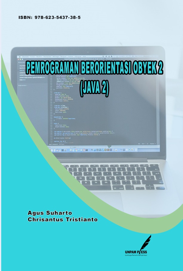 ![]() | Judul Buku: Pemrograman Berorientasi Obyek 2 (Java 2); Penulis: Agus Suharto, Chrisantus Tristianto; Editor: Agus Suharto; Desain Sampul: Putut Said Permana; Tata Letak: Ramdani Putra; ISBN: 978-623-5437-38-5; Halaman: xx + 298; Penerbit: Unpam Press; Tahun Terbit: 2022; Unduh File: file .pdf; |