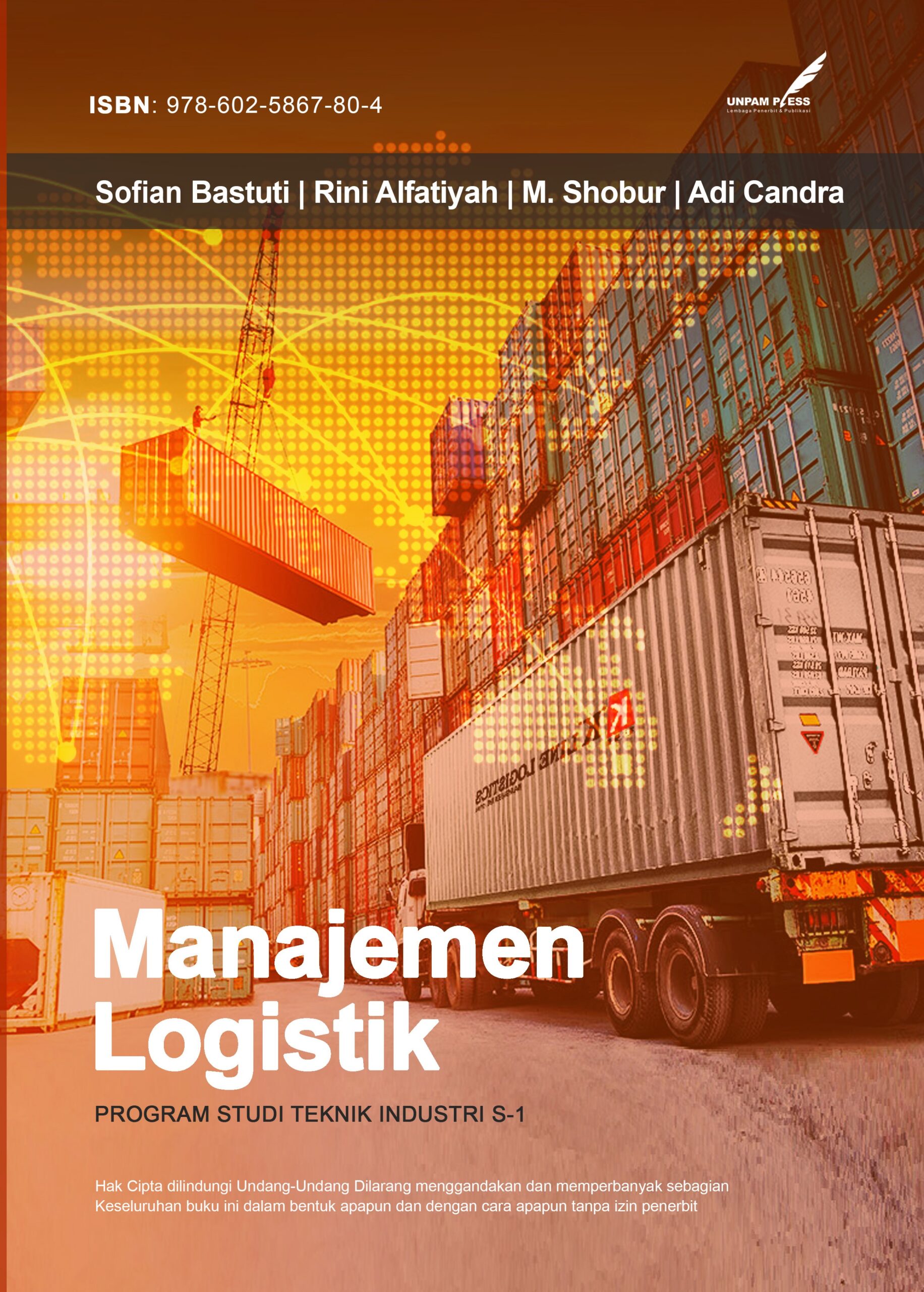 ![]() | Judul Buku: Manajemen Logistik; Penulis: Sofian Bastuti, Rini Alfatiyah, Muhammad Shobur, Adi Candra; Editor: Rini Alfatiyah; Desain Sampul: Aden; Tata Letak: Ubaid Al Faruq; ISBN: 978-602-5867-80-4 Halaman: xii+ 202; Harga: Rp. 48.256; Penerbit: Unpam Press; Tahun Terbit: 2022; Unduh File: file .pdf; |