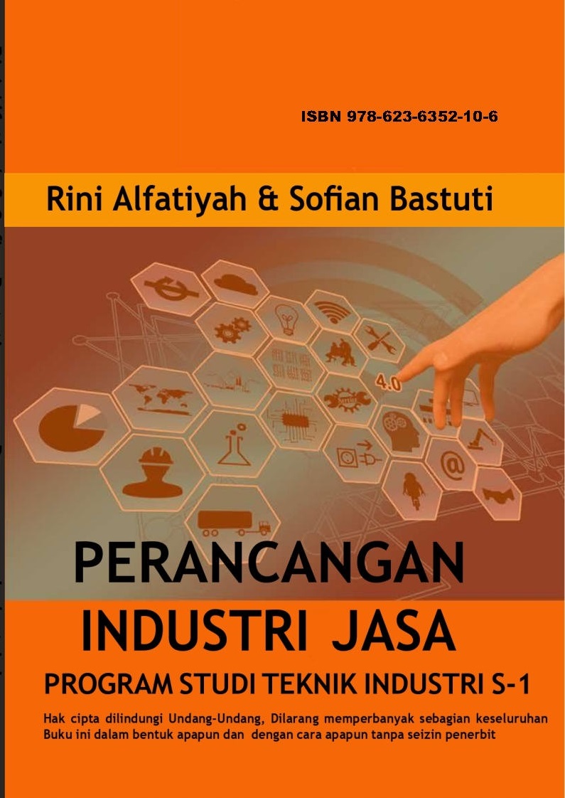![]() | Judul Buku: Perancangan Industri Jasa; Penulis: Rini Alfatiyah, Sofian Bastuti; Editor: Sofian Bastuti; Desain Sampul: Adi Candra; Tata Letak: Aden; ISBN: 978-623-6352-10-6; Halaman: xv+ 293; Harga : Rp. 58.032; Penerbit: Unpam Press; Tahun Terbit: 2021; Unduh File: file .pdf; |