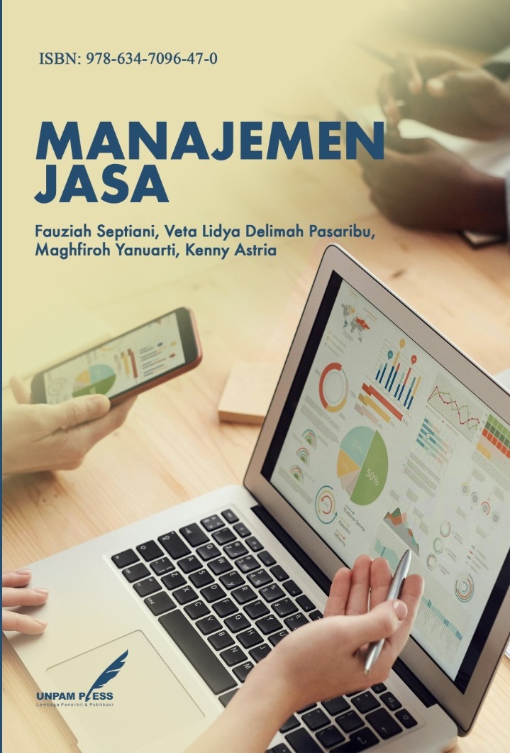 ![]() | Judul Buku: Manajemen Jasa; Penulis: Fauziah Septiani, Veta Lidya Delimah Pasaribu, Maghfiroh Yanuarti, Kenny Astria; Editor: Suharni Rahayu, Ana Septia Rahman; Desain Sampul: Hilda; Tata Letak: Ramdani Putra; ISBN: 978-634-7096-47-0; Halaman: xx+ 774; Harga: Rp. 108.576; Penerbit: Unpam Press; Tahun Terbit: 2025; Unduh File: file .pdf; |
